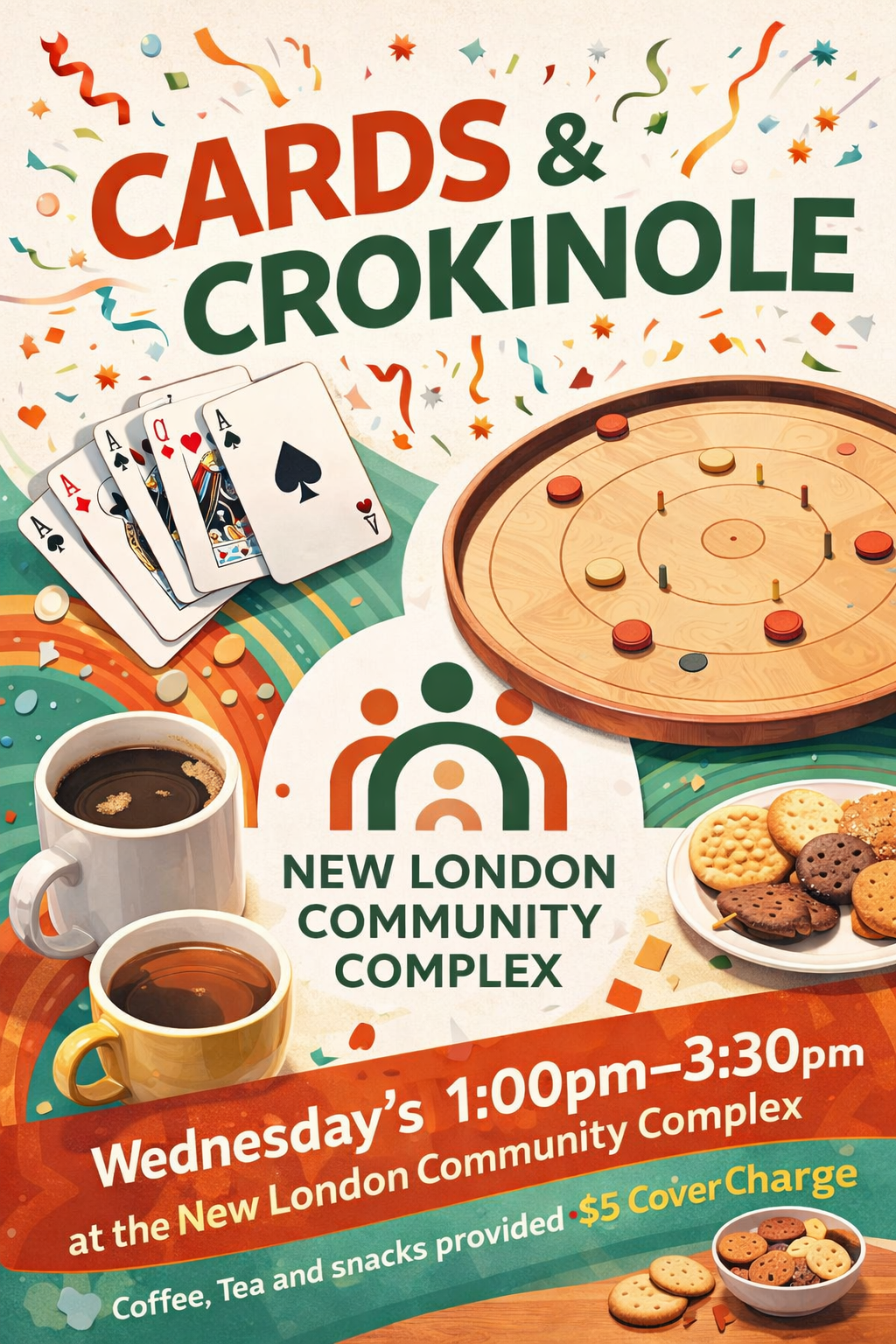 At New London Community Complex, we host a variety of community events that bring residents together for fun, learning, and connection. From seasonal concerts to workshops, indoor pickleball and cards and crokinole, our events cater to all ages and interests. Participate in engaging activities, meet new friends, and enjoy the vibrant atmosphere of our gathering space. Each event is designed to foster community spirit and inclusiveness, making it a perfect opportunity to get involved and make lasting memories. Check our Facebook page for upcoming events and be part of our lively community!