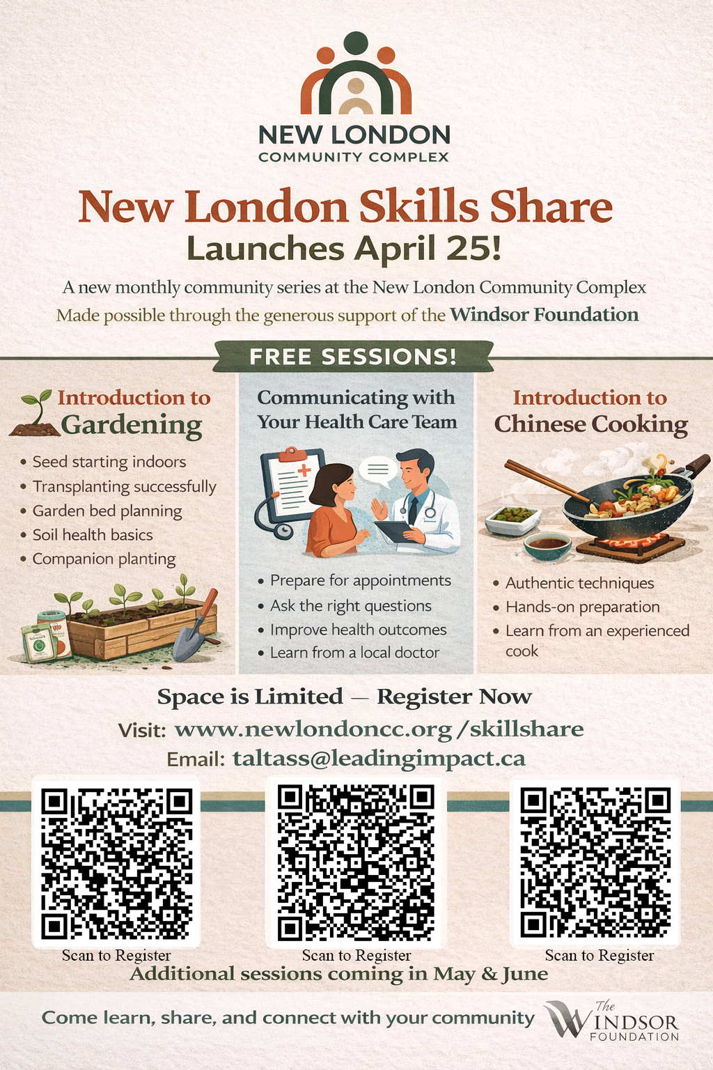 or email taltass@leadingimpact.ca. Additional sessions will take place in May and June. Come learn, share, and connect with your community.